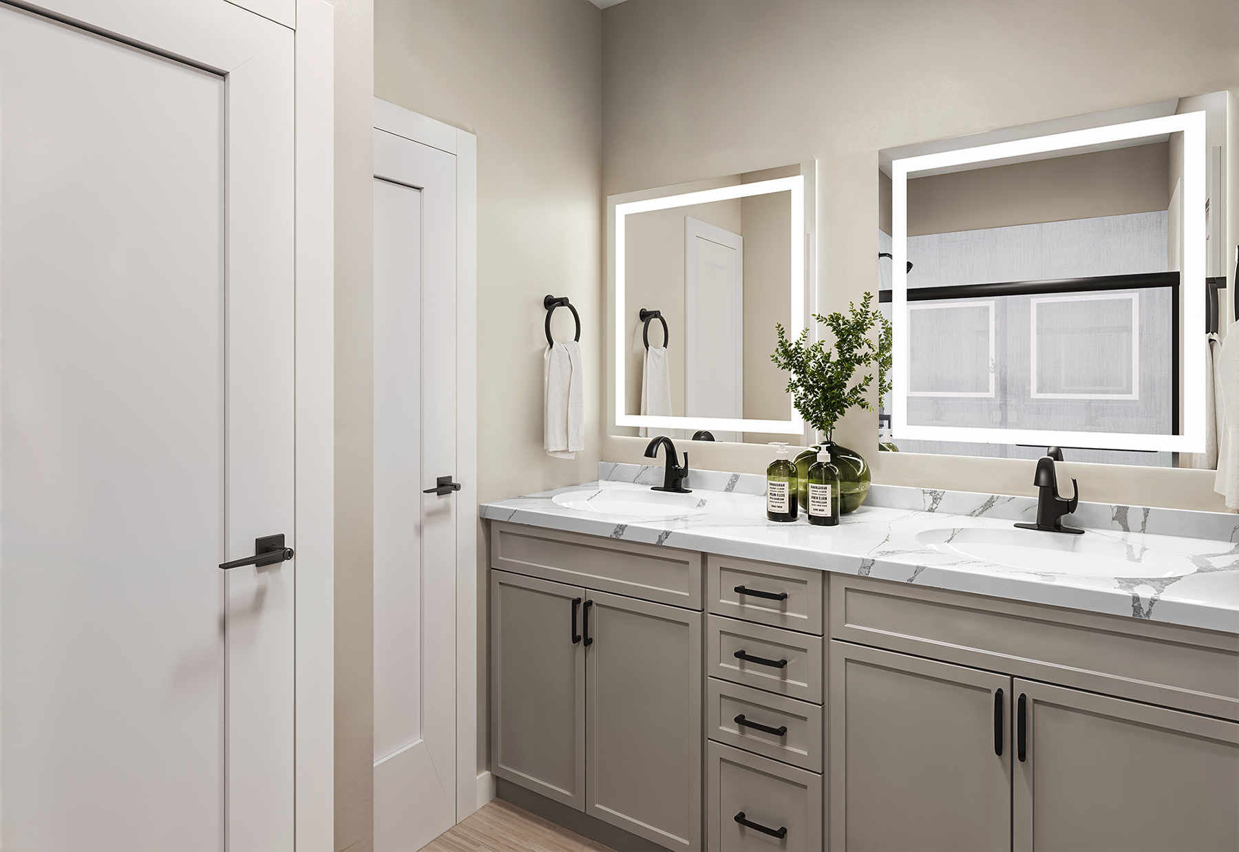 Spa-Inspired Bathroom with LED Backlit Mirrors